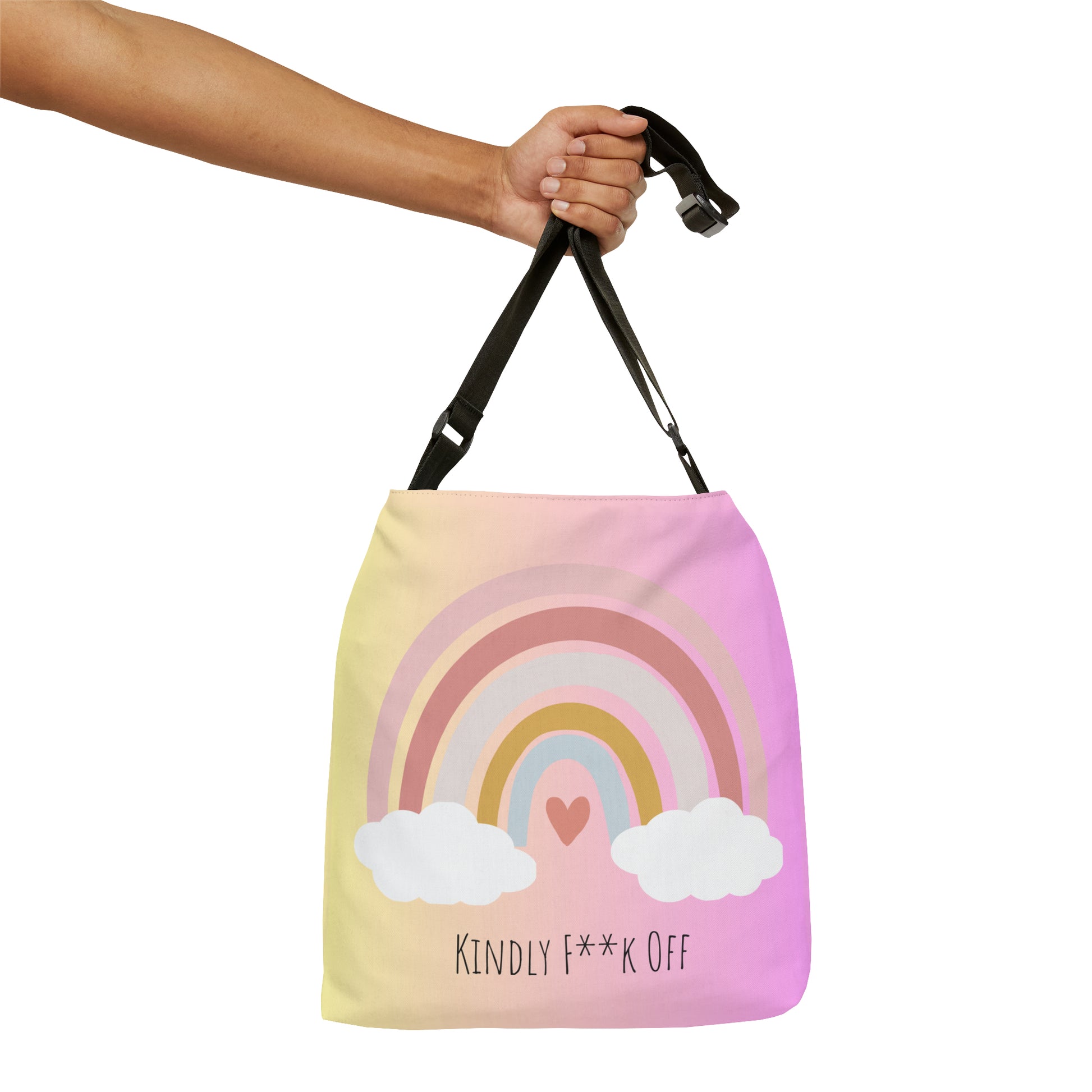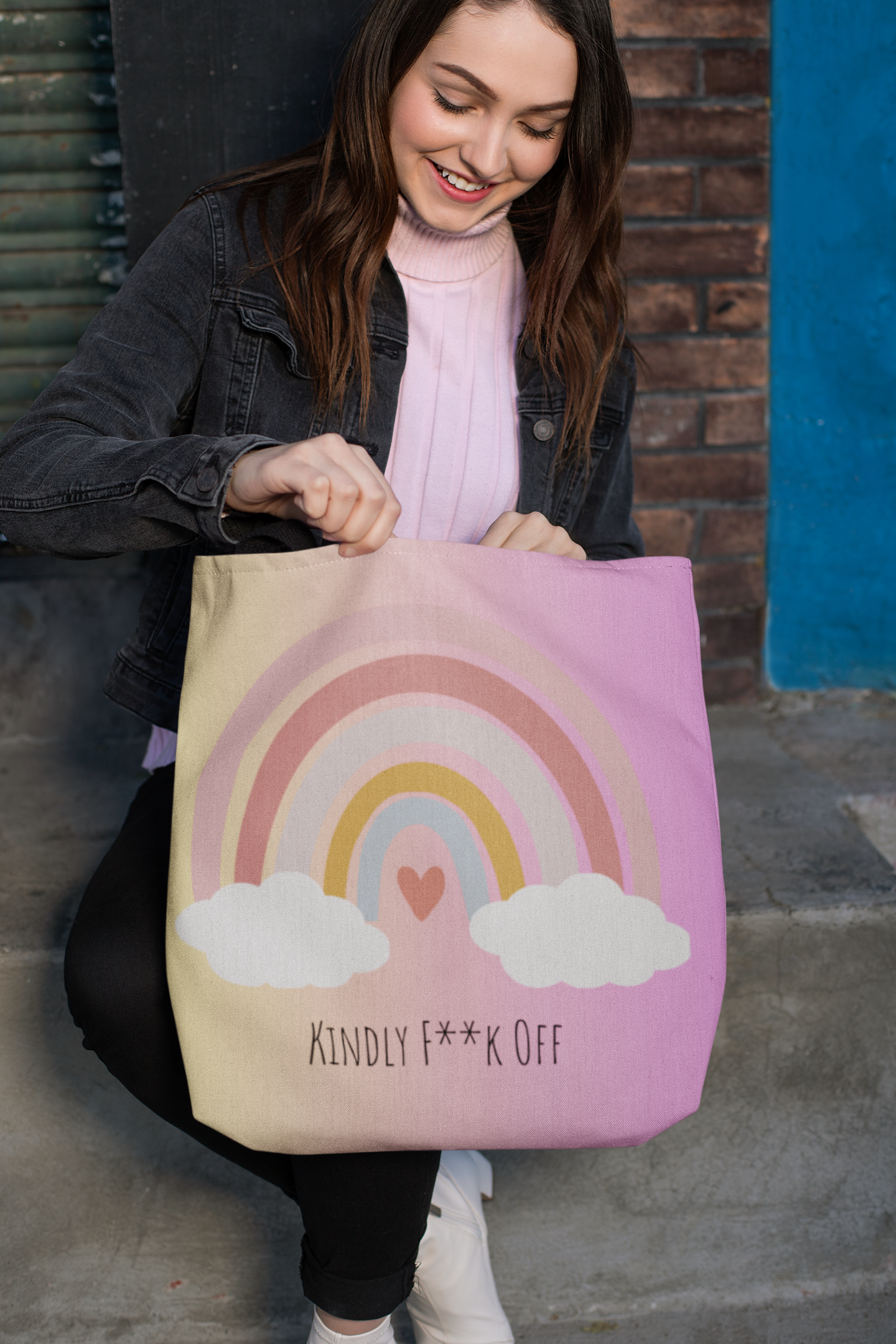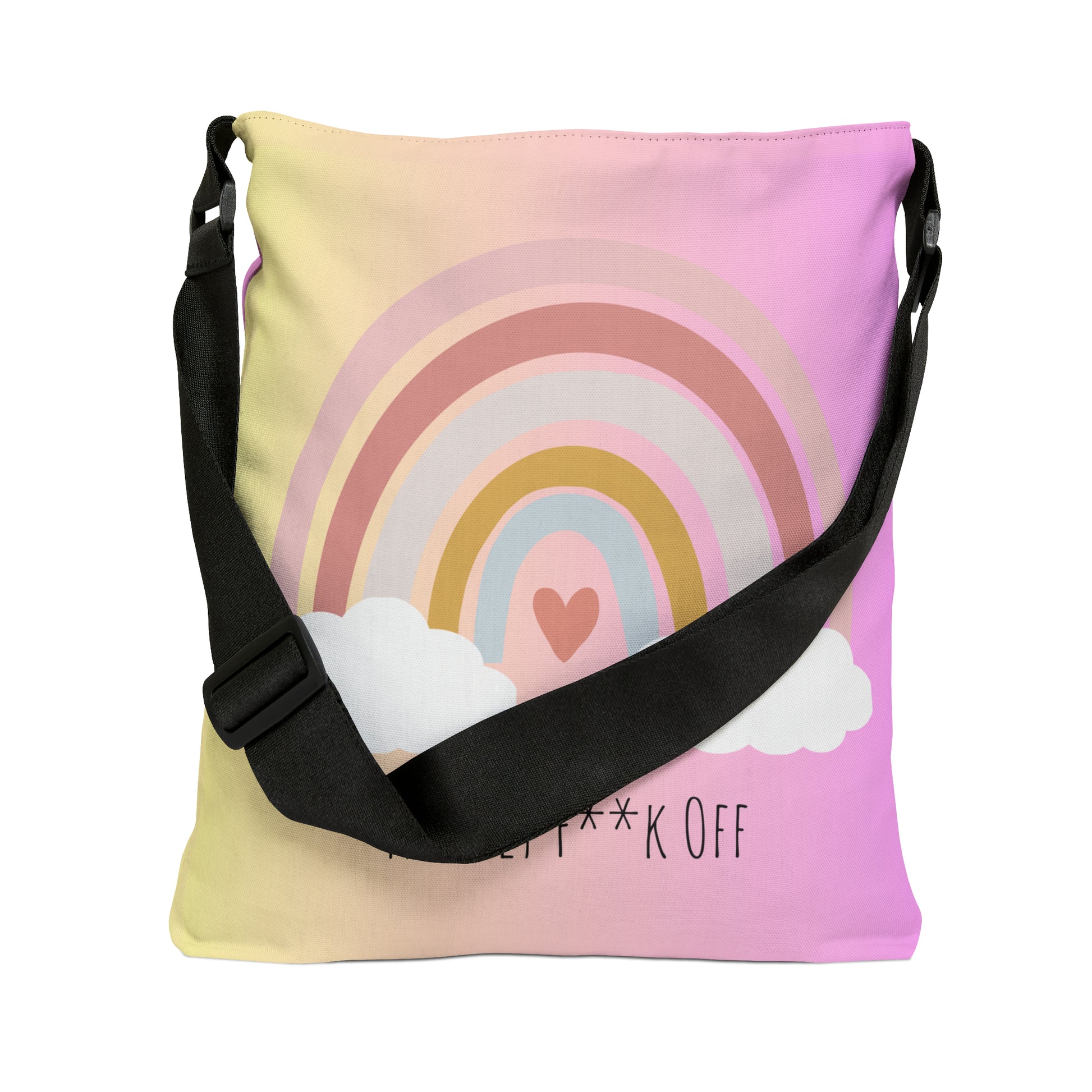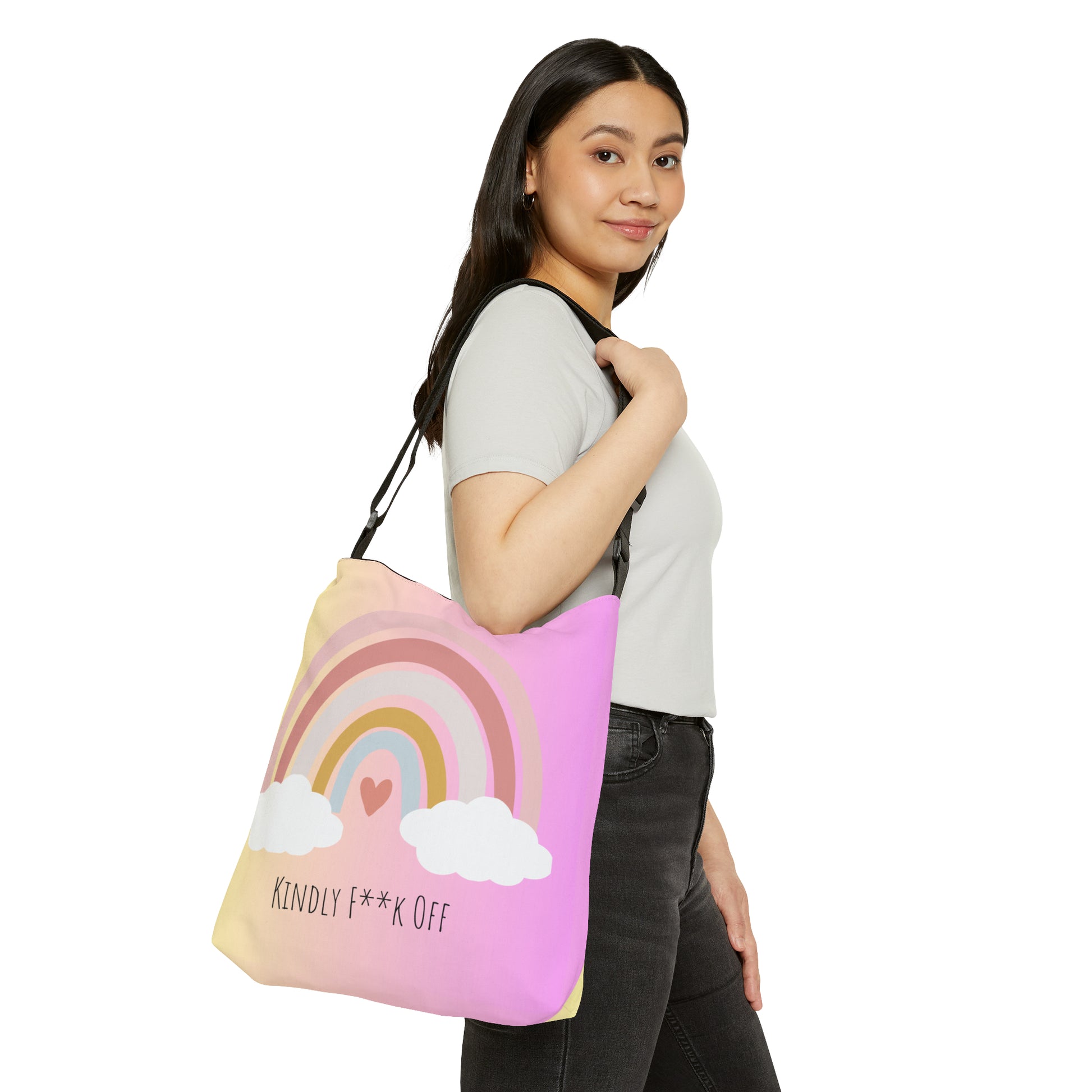 Our Kindly F**k Off Rainbow Adjustable Tote serves sends a powerful message of self-confidence and empowerment. Let your tote do the talking